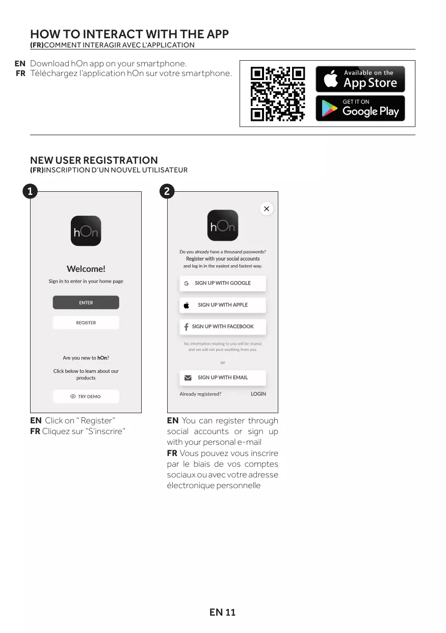 FR Téchécharge l'application hOn sur votre smartphone.