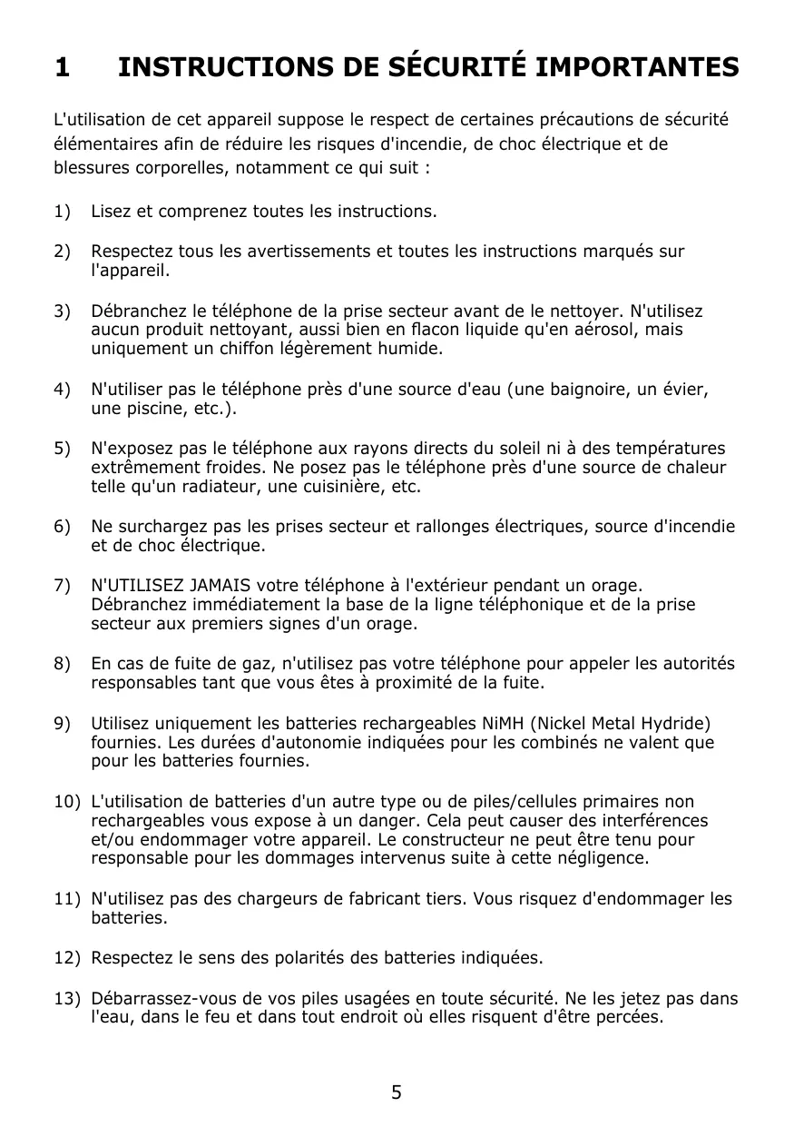 rechargeables vous expose à un danger. Cela peut causer des interférences et/ou endommager votre appareil. Le constructeur ne peut être tenu pour responsable pour les dommages intervenus suite à cette négligence.