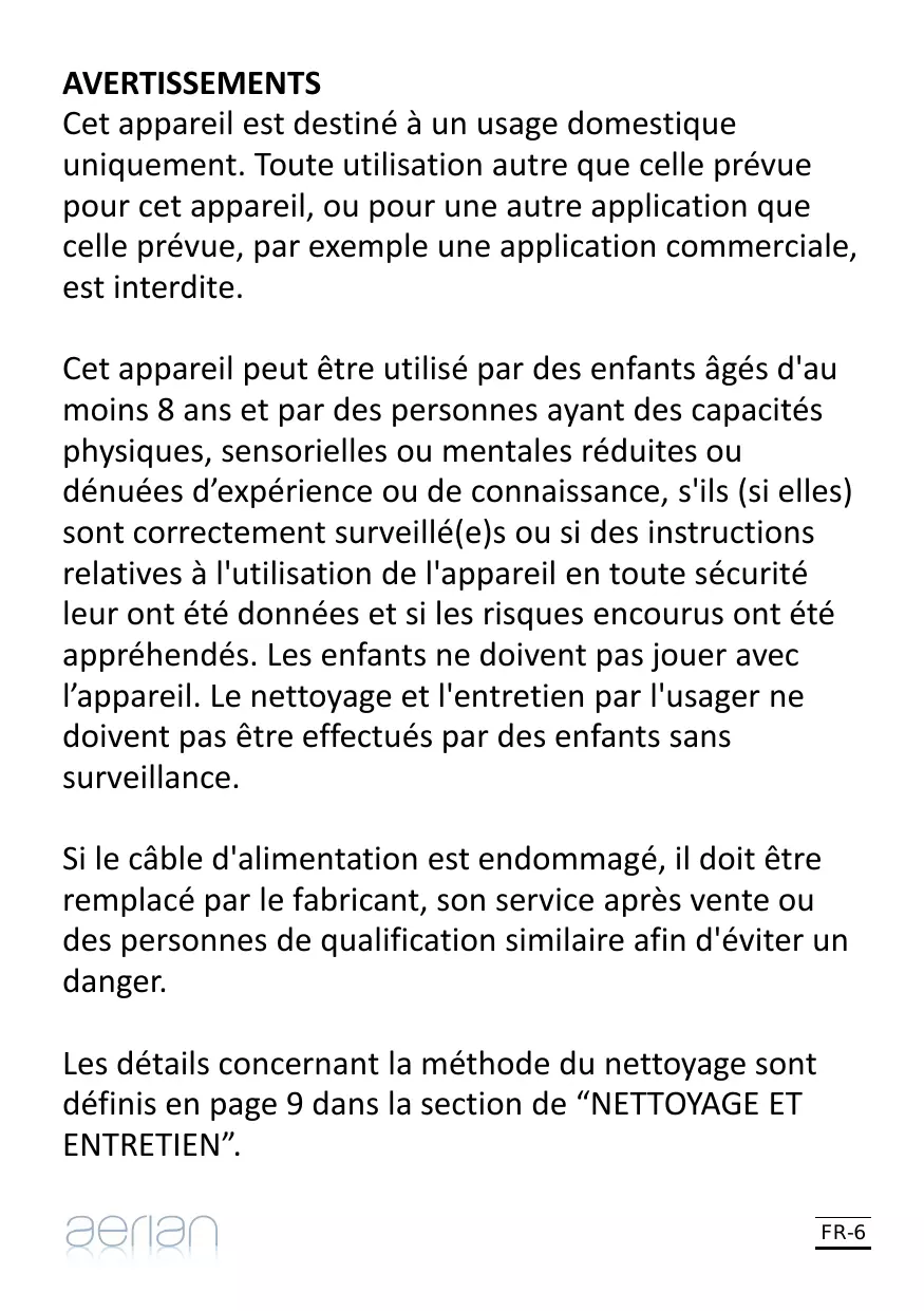 AFT1 - Ventilateur AERIAN - Notice d'utilisation et mode d'emploi gratuit