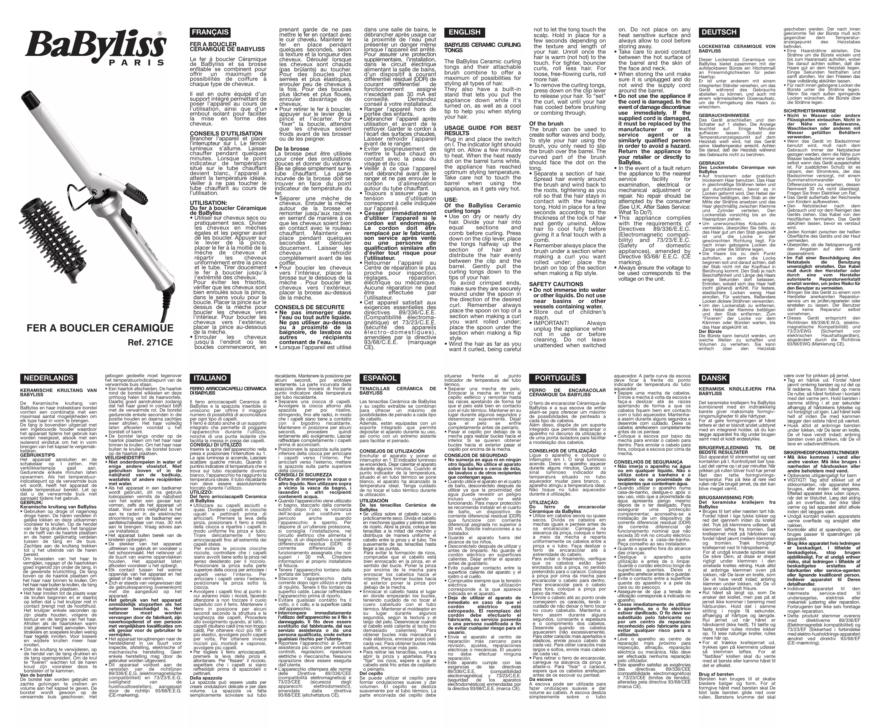 271CE - Fer a boucler BABYLISS - Notice d'utilisation et mode d'emploi gratuit
