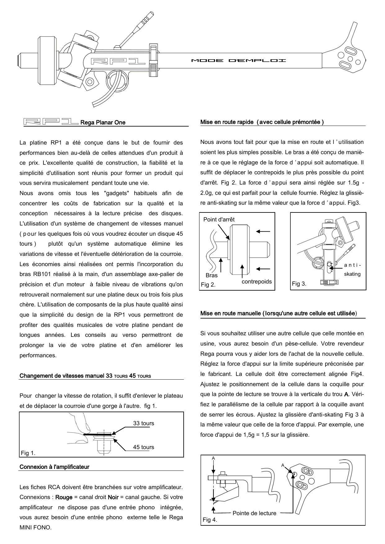 (Ces deux cellules sont entièrement fabriquées à la main dans notre usine). De plus amples renseignements sont disponibles sur notre site www.rega.co.uk ou chez votre revendeur. Nous vous remercions d'avoir besoin la platine RP1, fabriquée entièrement en Angletterre.