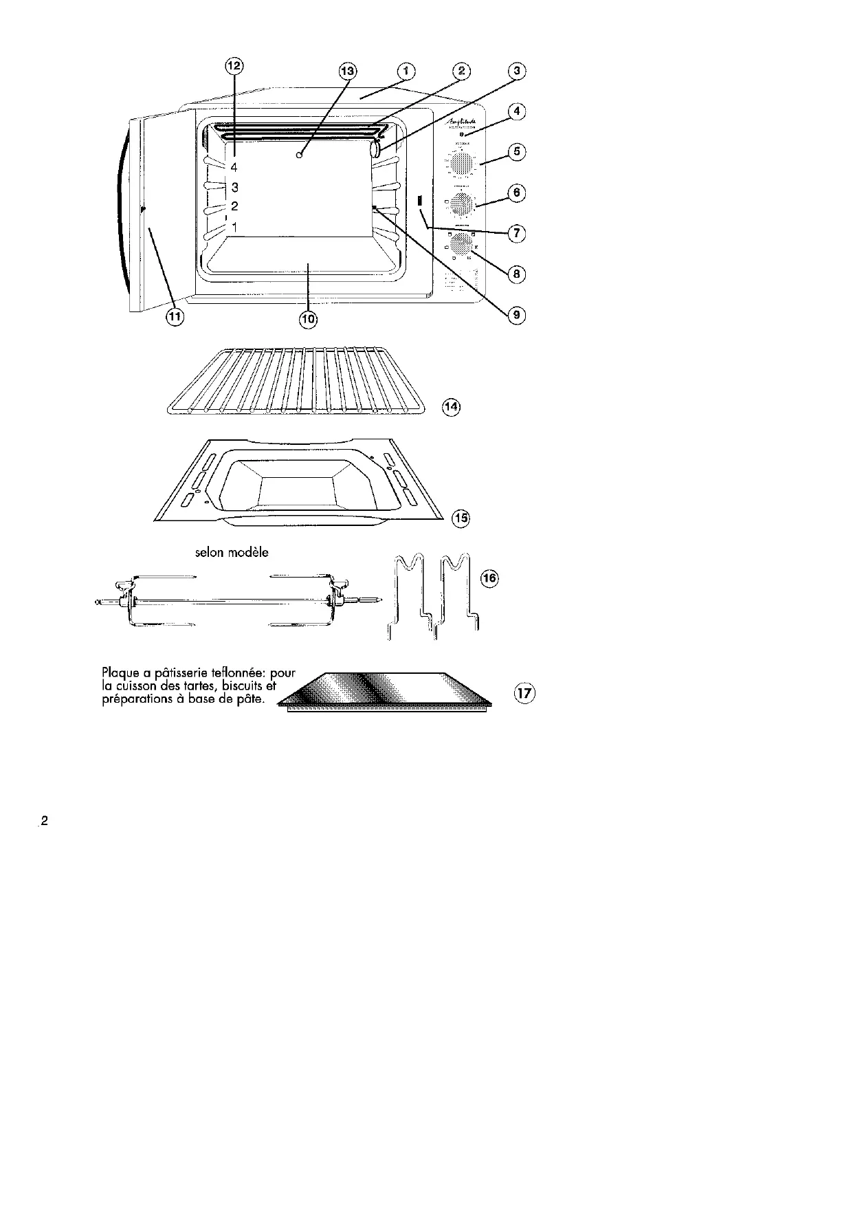 Accessoires inclusGrille, lèchefrite, tournebroche, plaque à pâtisserie