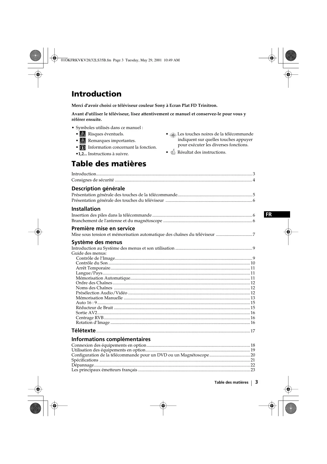 MODE D'EMPLOI KV28LS36 SONY