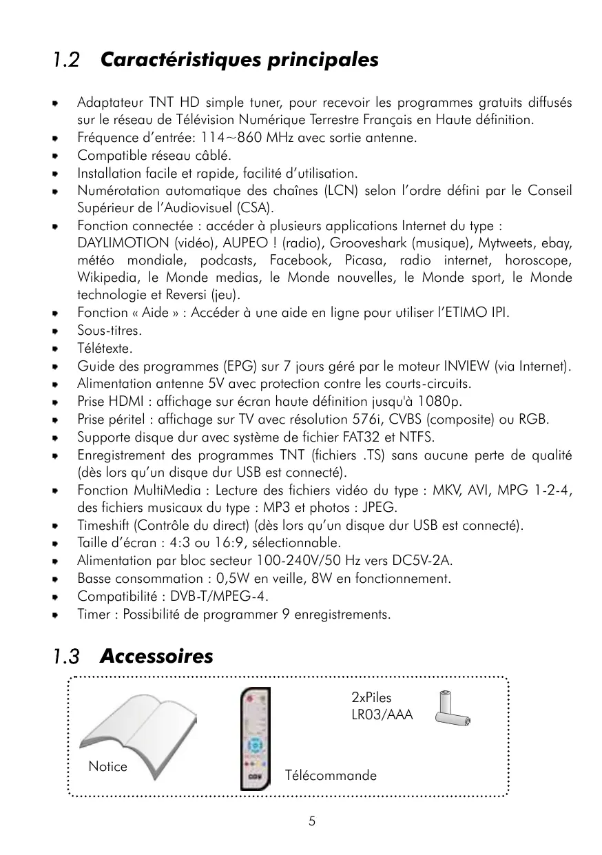 Guide des programmes (EPG) sur 7 jours géré par le moteur INVIEW (via Internet). - Alimentation antennae 5V avec protection contre les courts-circuits.