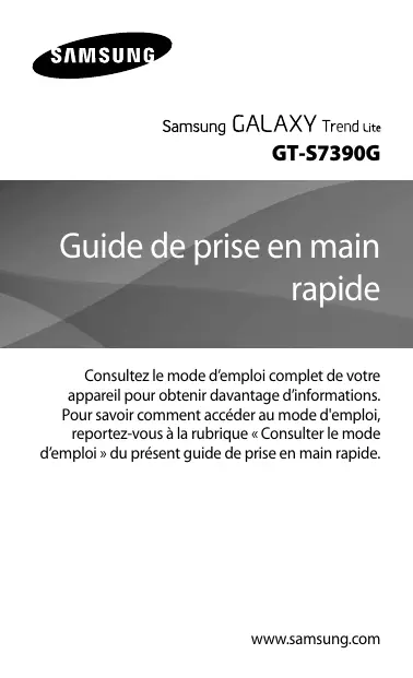 MODE D'EMPLOI GALAXY TREND LITE 4 POUCES, 4 GO - GT-S7390G SAMSUNG
