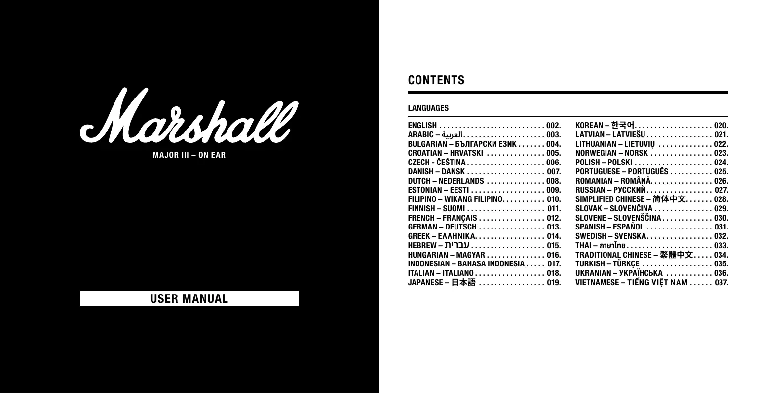 MAJOR 3 - Casque audio MARSHALL - Notice d'utilisation et mode d'emploi gratuit