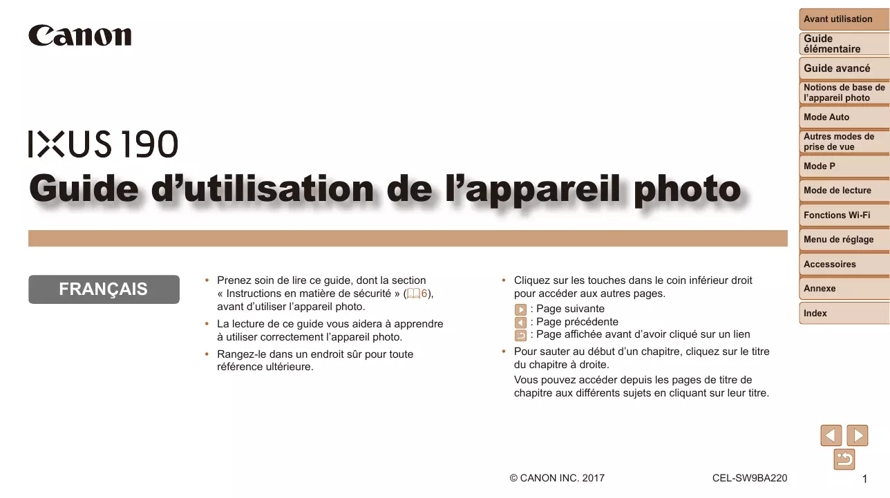 La reproduction non autorisée de ce guide est interdite. - Toutes les mesures reposent sur les normes de test de Canon. - Les informations sont susceptibles d'être modifiées sans avis préalable, tout comme les caractéristiques et l'apparence du produit. - Les illustrations et les captures d'écran utilisées dans ce guide peuvent différer légèrement de l'opération utilisée. - Indépendamment de ce qui précède, Canon ne saurait être tenu responsable de toute perte résultant de l'utilisation de ce produit.