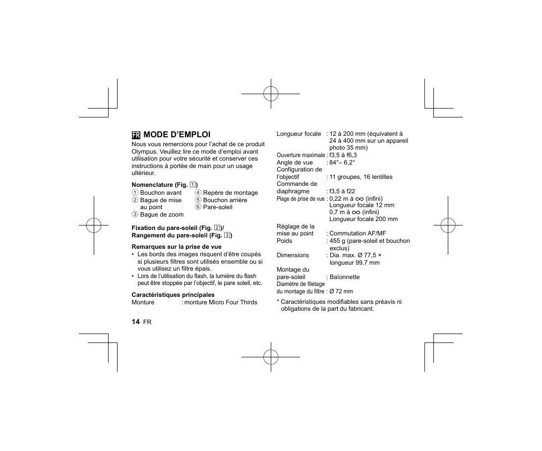 ED 12-200 3.5-6.3 - Objectif hybride OLYMPUS - Notice d'utilisation et mode d'emploi gratuit