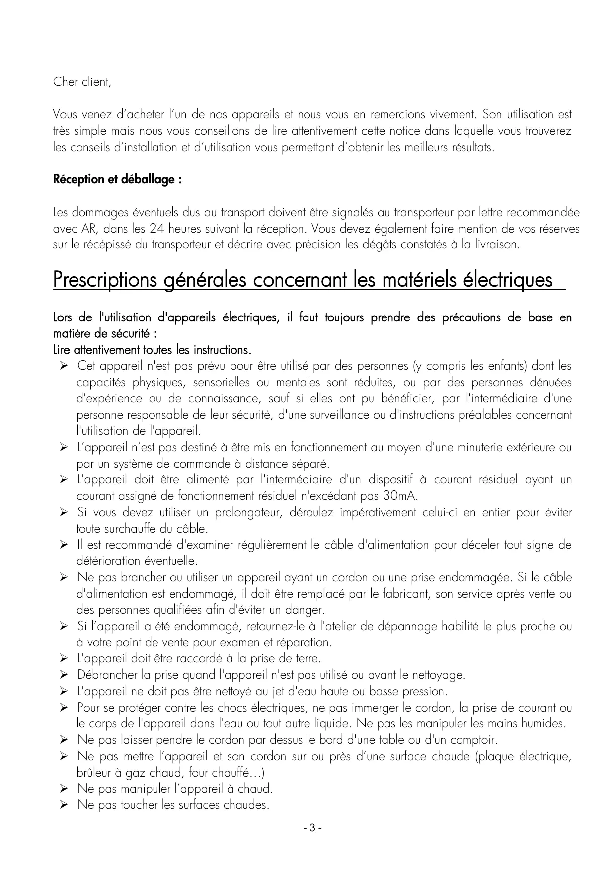 Vous venez d'acheter l’un de nos appareils et nous vous en remercions vivement. Son utilisation est très simple mais nous vous conseillons de lire attentivement cette notice dans laquelle vous trouverez les conseils d’installation et d’utilisation vous permettant d’obtenir les meilleurs résultats.