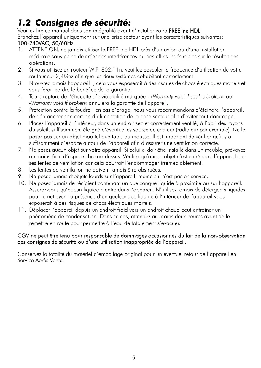 - ATTENTION, ne jamais utiliser le FREELine HDL puis d'un avion ou d'une installation Médicale sous peine de créé des interférences ou des effets indésirables sur le résultat des opérations.