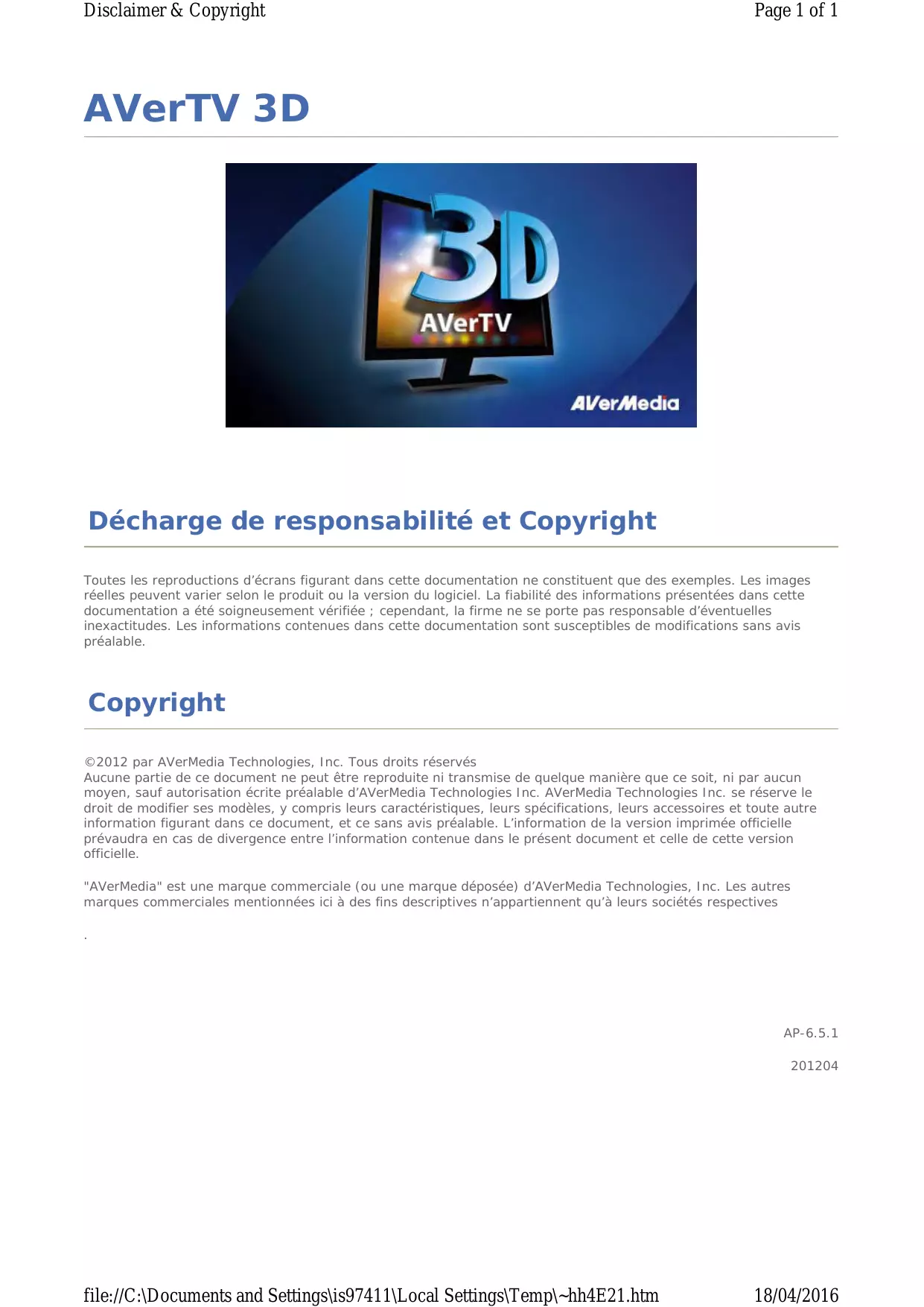 ©2012 par AVerMedia Technologies, Inc. Tous droits reserves.