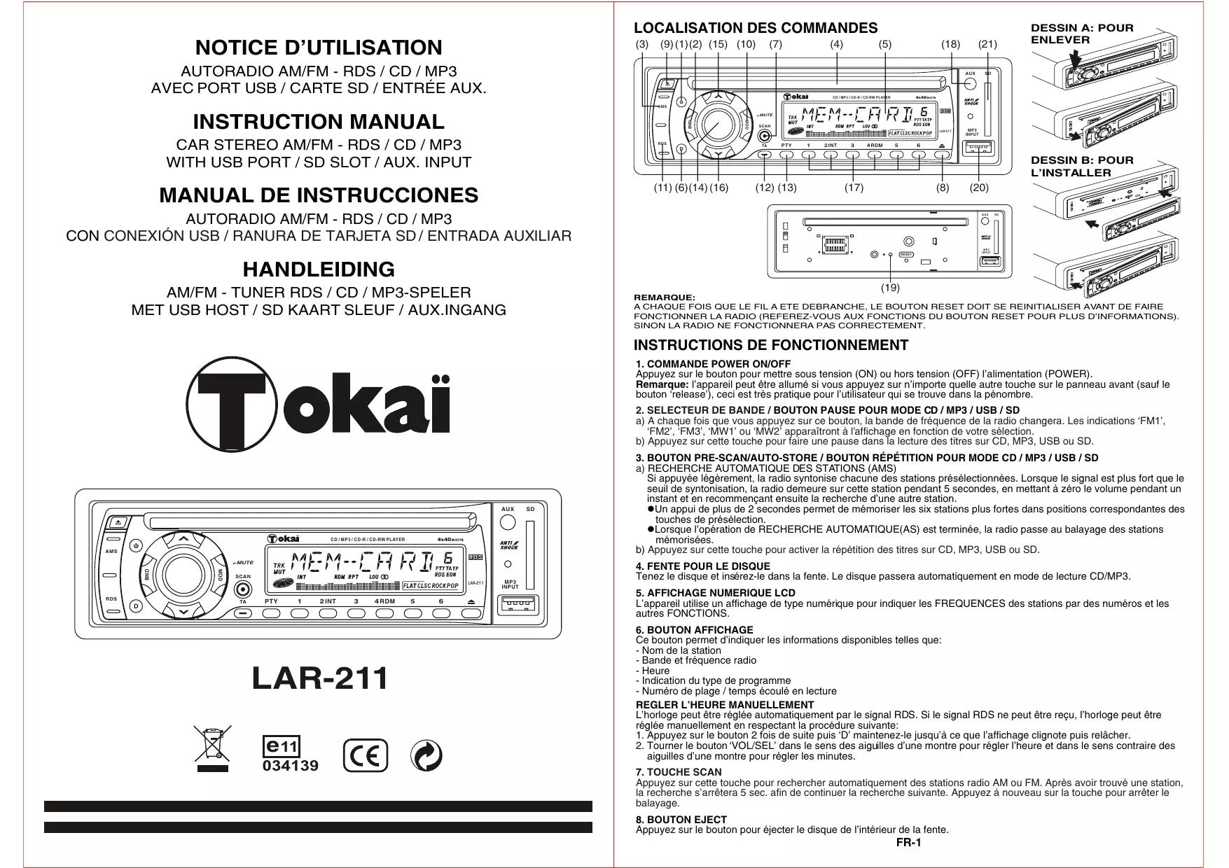 LAR 211 - Autoradio TOKA - Notice d'utilisation et mode d'emploi gratuit
