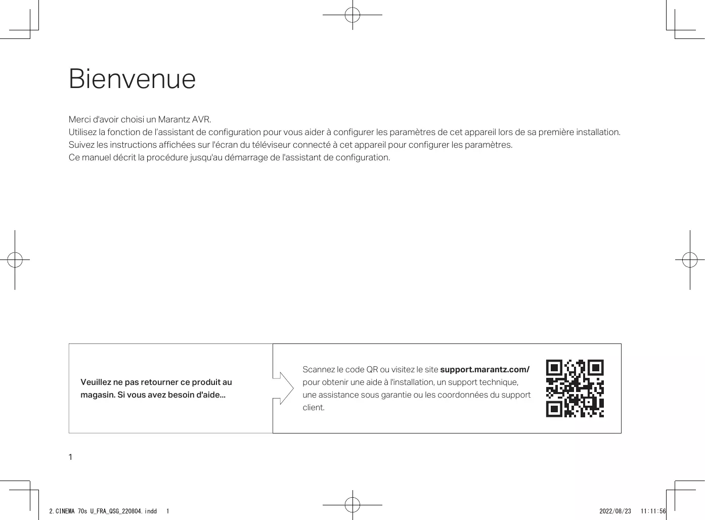 Scannez le code QR ou visitez le site support.marantz.com/ pour obtenir une aide à l'installation, un support technique, une assistance sous garantie ou les coordonnées du support client.