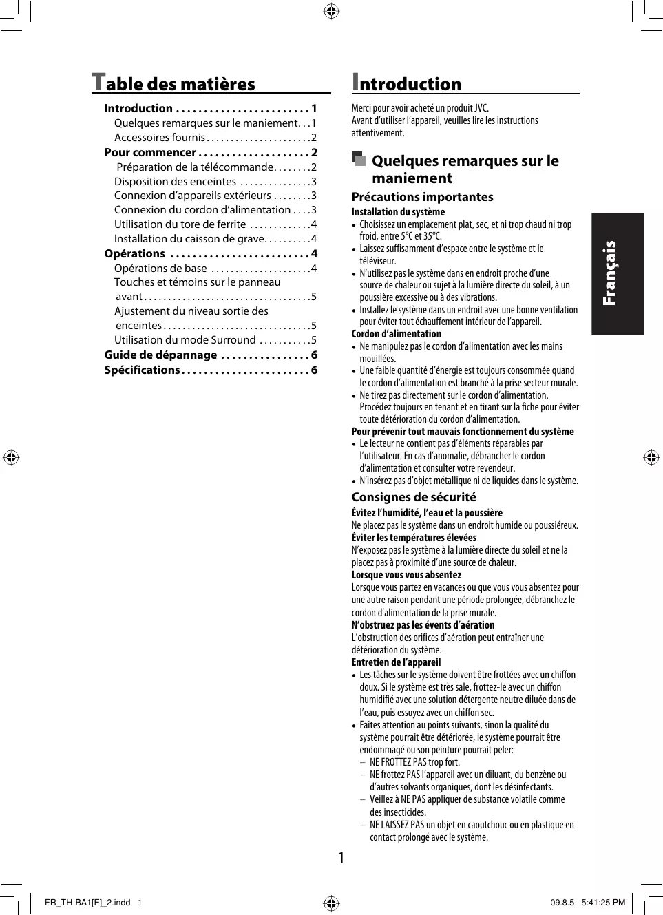 TH-BA1 - Système audio home cinéma JVC - Notice d'utilisation et mode d'emploi gratuit
