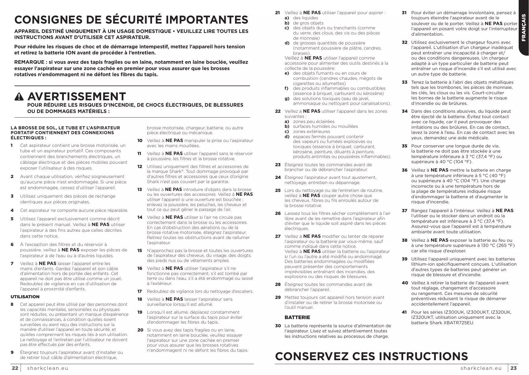 CONSERVEZ CES INSTRUCTIONS s h a r kc l e a n . e u