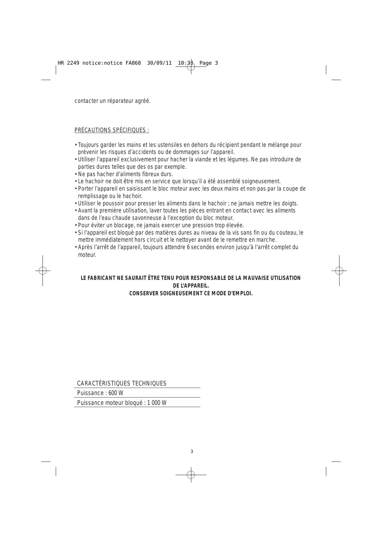 MODE D'EMPLOI HR 2249 WHITE AND BROWN