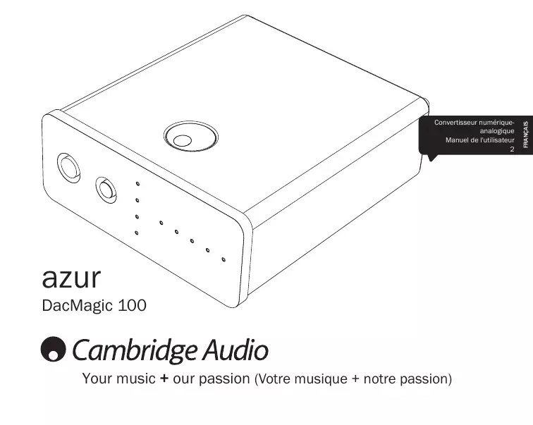 azur DacMagic 100 Your music + our passion (Votre musique + notre passion) FRANÇAIS Convertisseur numériqueanalogique Manuel de l'utilisateur