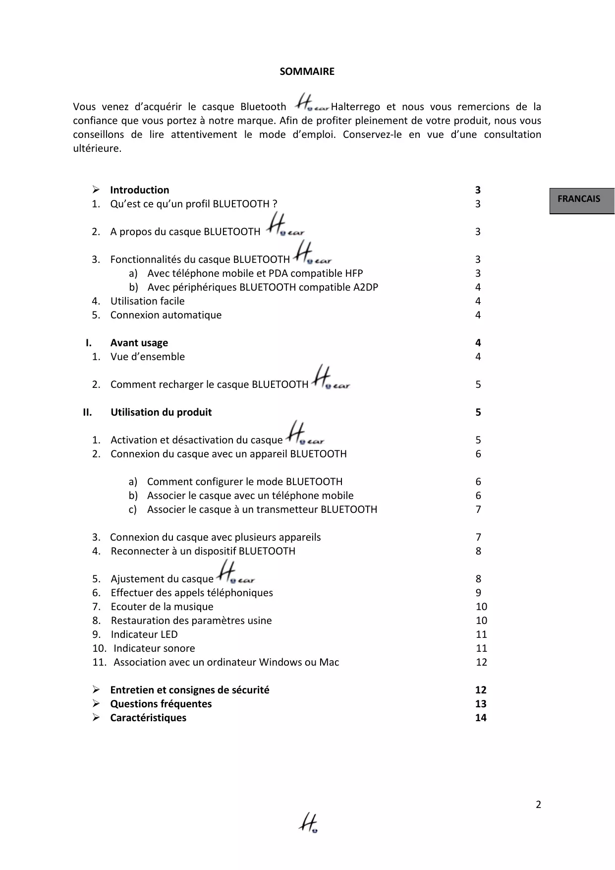 Vous venez d’acquérir le casque Bluetooth Hear Halo Reggio et nous vous remercions de la confiance que vous portez à notre marque. Afin de profiter pleinement de votre produit, nous vous conseillons de lire attentivement le mode d’emploi. Conservez-le en vue d’une consultation ultérieure.