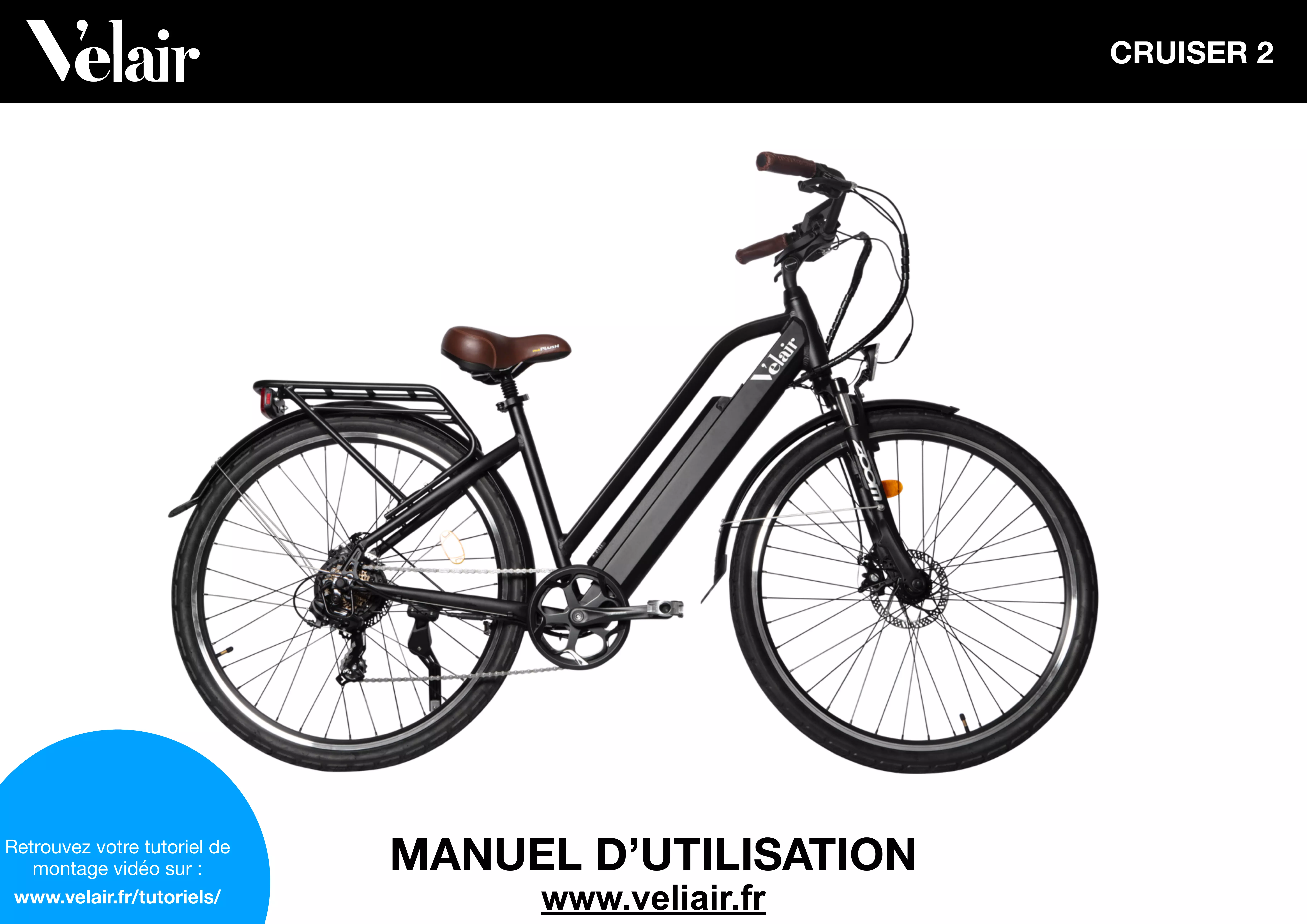 Ce manuel a été conçu par VELAIR pour vous permettre d'obtenir les meilleures performances de votre vélo électrique tout en vous garantissant confort, plaisir et sécurité lors de la conduite. Le manuel décrit les procédures spécifiques d'entretien et de maintenance qui vous garantiront des années d'utilisation sans défaut. Veuillez prêter une attention particulière à la section sur le chargement et l'entretien de la batterie.