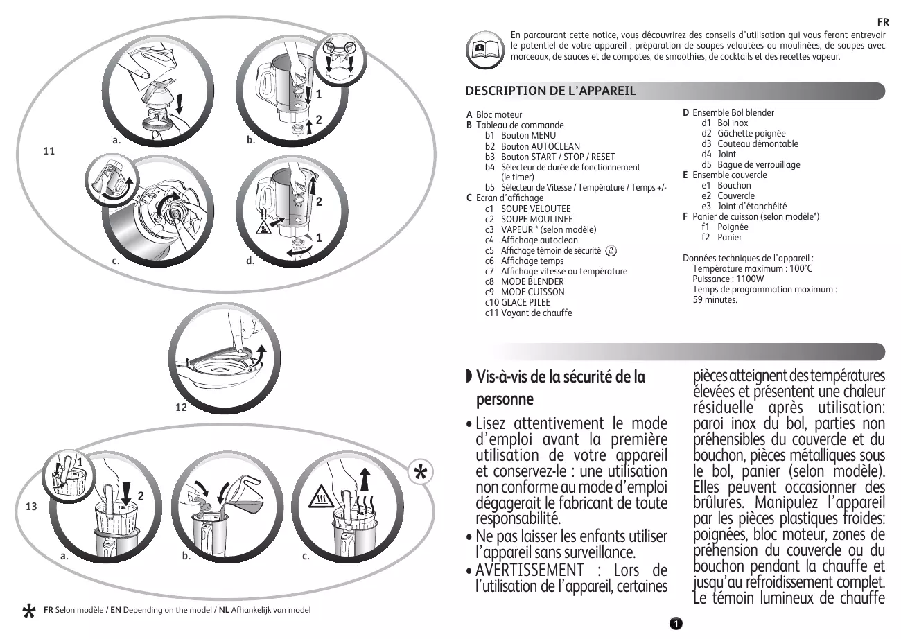 | Sécurité | Système de verrouillage du couvercle, protection contre la surchauffe |