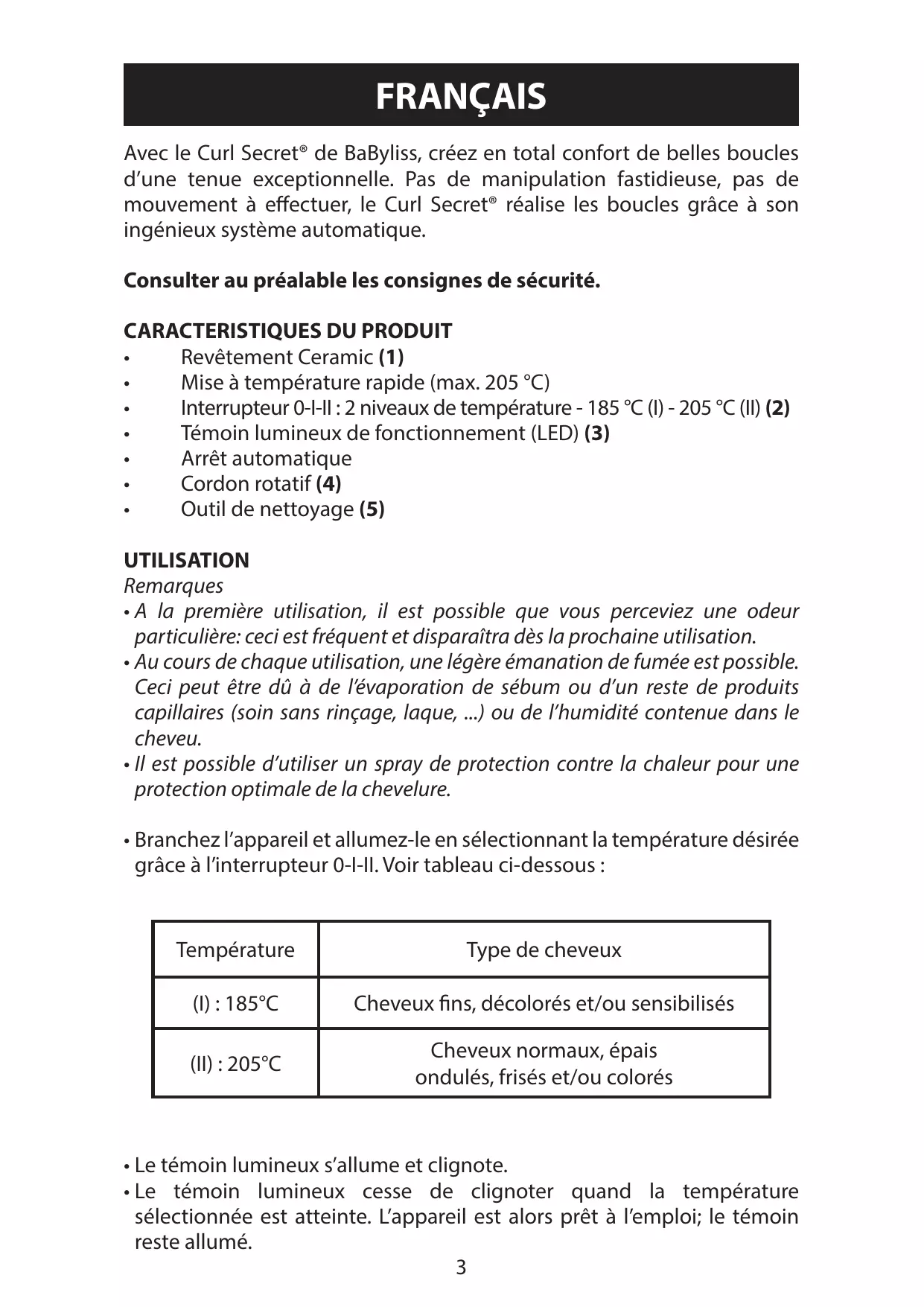 MODE D'EMPLOI CURL SECRET C902PE BABYLISS