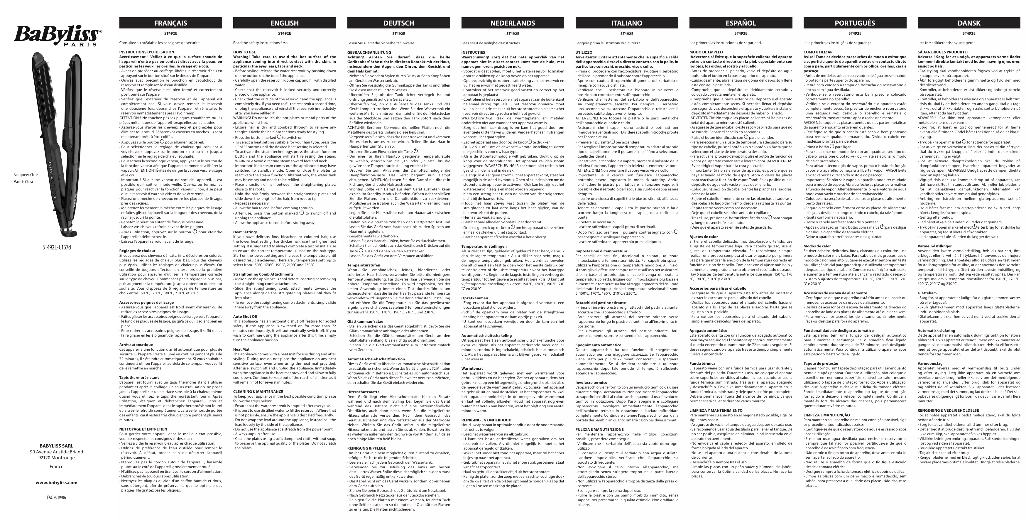 BABYLISS SARL 99 Avenue Aristide Briand 92120 Montrouge France www.babyliss.com FAC 2019/06
