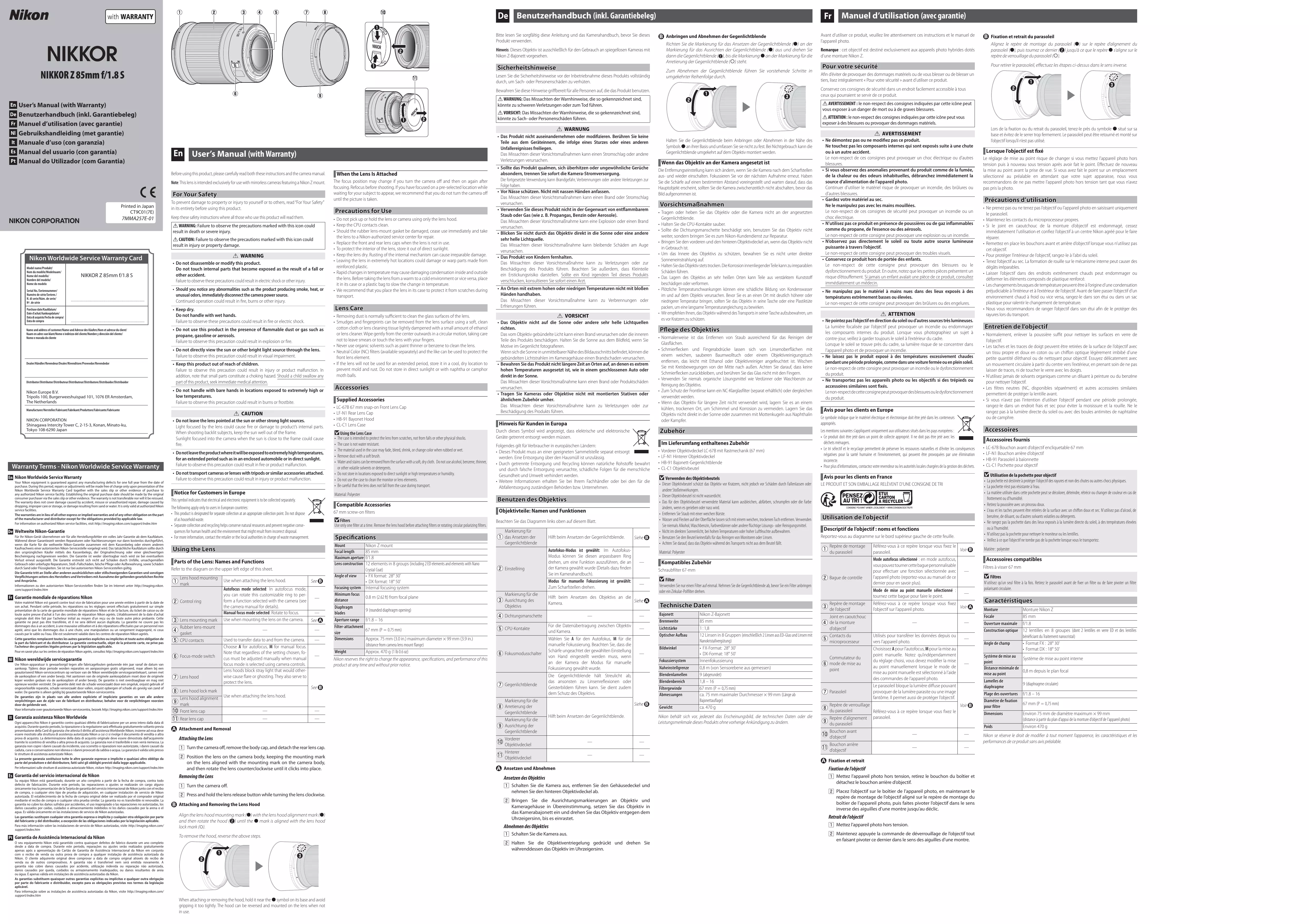 MODE D'EMPLOI HYBRIDENIKKORZ85/1.8 NIKON