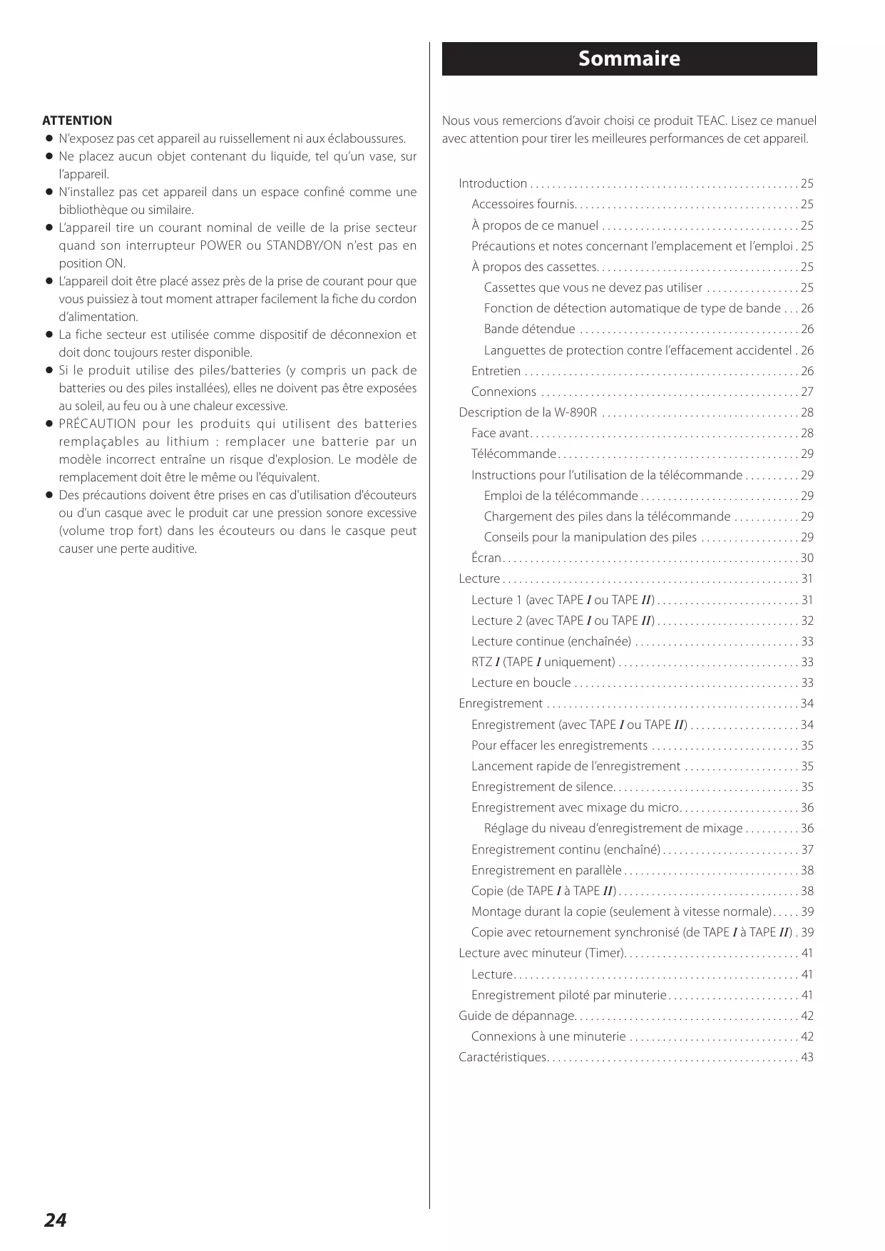 Nous vous remercions d’avoir choisi ce produit TEAC. Lisez ce manuel avec attention pour tirer les meilleures performances de cet appareil.