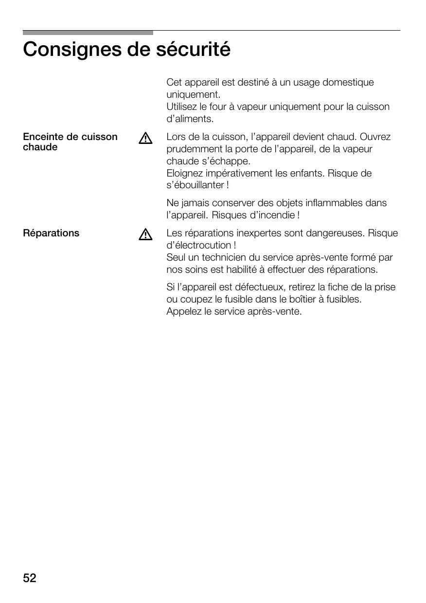 - Ne tentez pas d'utiliser le four tant que le problème n'est pas résolu pour éviter tout risque d'accident électrique.