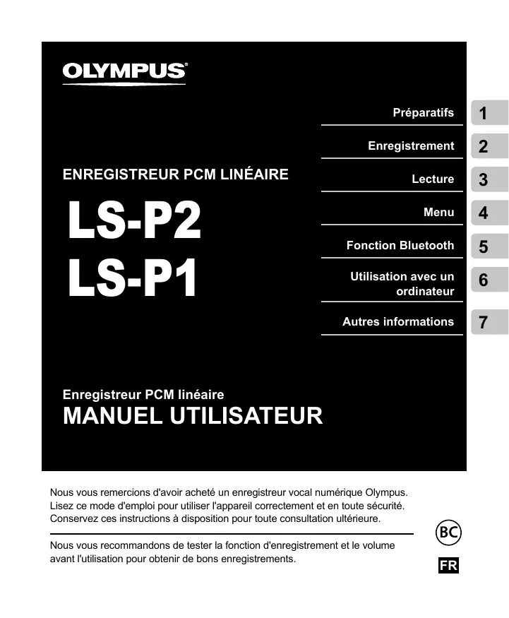 Téléchargez la notice de votre Enregistreur vocal numérique au format PDF gratuitement ! Retrouvez votre notice LS-P1 - OLYMPUS et reprennez votre appareil électronique en main. Sur cette page sont publiés tous les documents nécessaires à l'utilisation de votre appareil LS-P1 de la marque OLYMPUS.