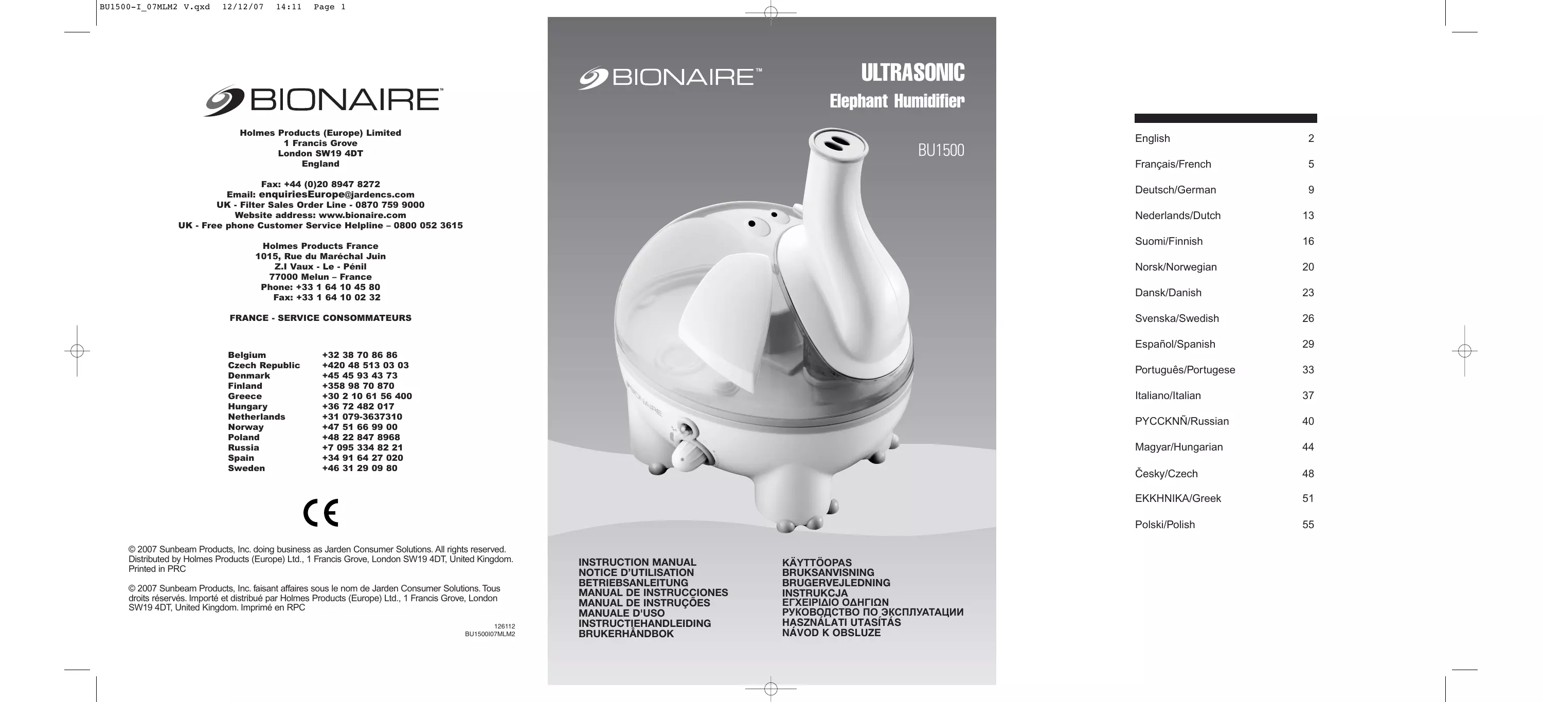 Retrouvez gratuitement la notice de l'appareil BU 1500-I BIONAIRE au format PDF.