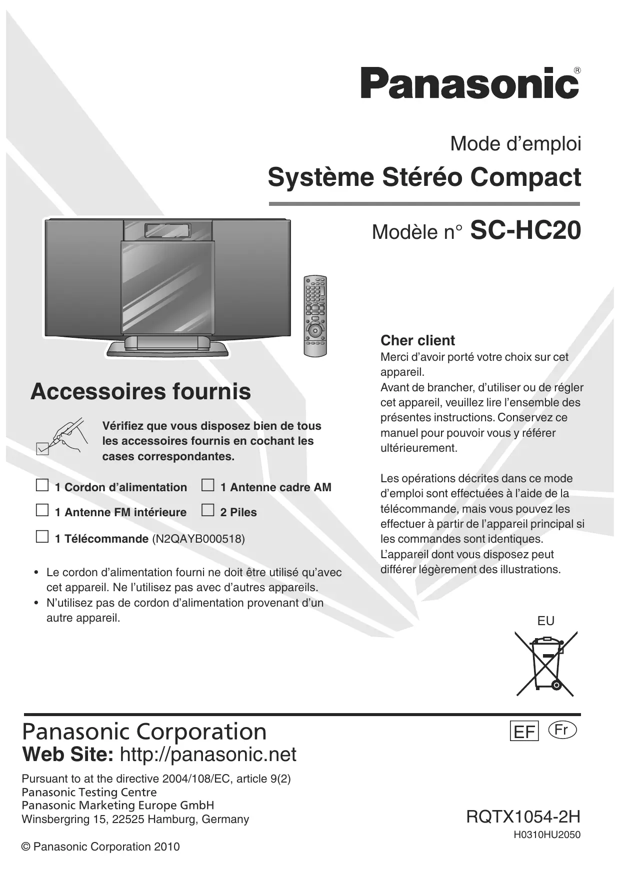 SC-HC20EF-K - Système audio compact PANASONIC - Notice d'utilisation et mode d'emploi gratuit