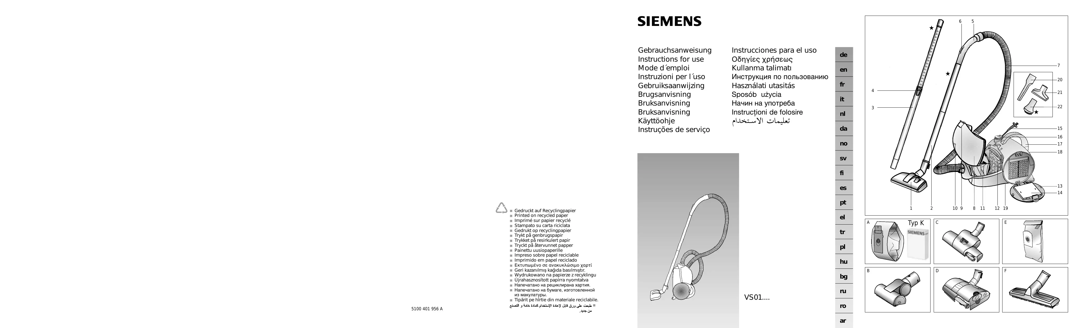 Retrouvez gratuitement la notice de l'appareil VS01G600 SIEMENS au format PDF.