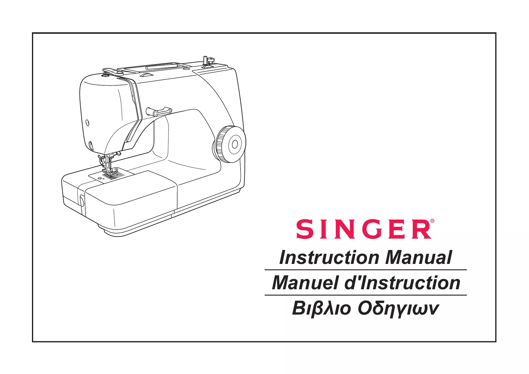 GB Congratulations As the owner of a new Singer sewing machine, you are about to begin an exciting adventure in creativity. From the moment you first use your machine, you will know you are sewing on one of the easiest to use sewing machines ever made. May we recommend that, before you start to use your sewing machine, you discover the many advantages and the ease of operation by going through this instruction book, step by step, seated at your machine. To ensure that you are always provided with the most modern sewing capabilities, the manufacturer reserves the right to change the appearance, design or accessories of this sewing machine when considered necessary. SINGER IS A REGISTERED TRADEMARK OF THE SINGER COMPANY LIMITED OR ITS AFFILIATES COPYRIGHT © 2005 All rights reserved throughout the world.