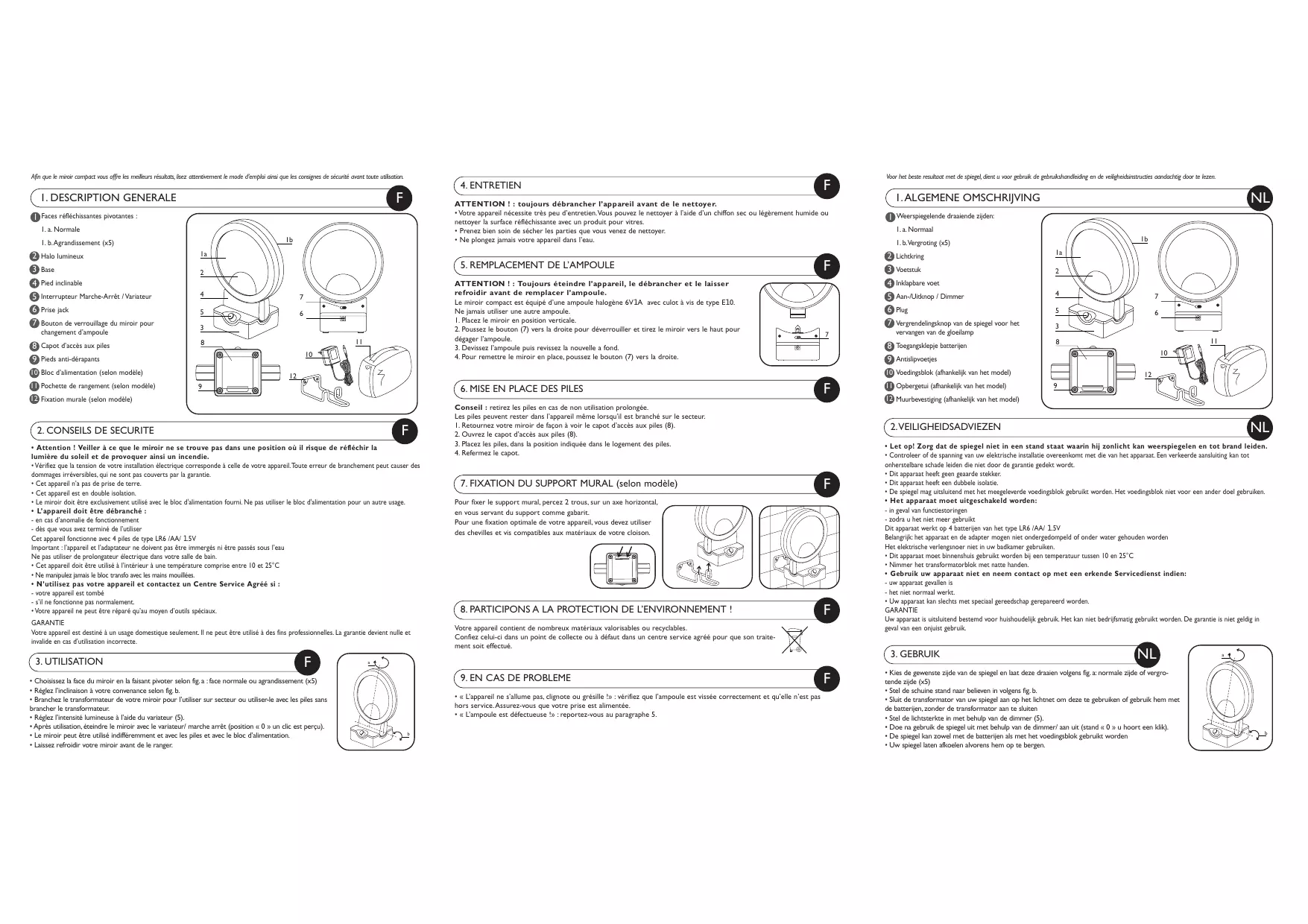 Afin que le miroir compact vous offre les meilleurs résultats, lisez attentivement le mode d’emploi ainsi que les consignes de sécurité avant toute utilisation.