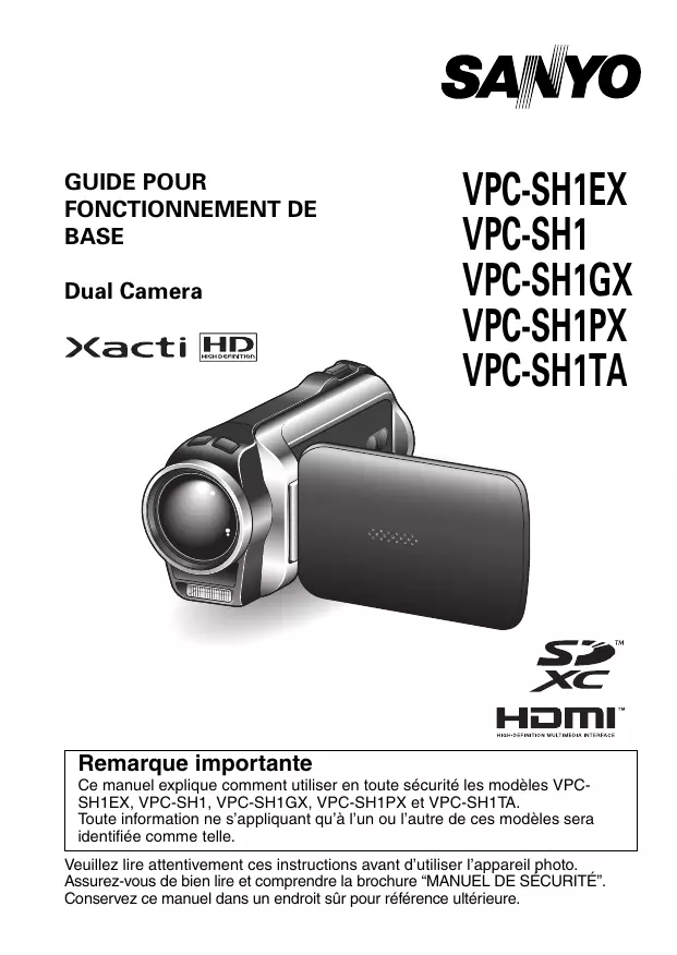 Téléchargez la notice de votre Caméscope au format PDF gratuitement ! Retrouvez votre notice SH1 ROUGE - SANYO et reprennez votre appareil électronique en main. Sur cette page sont publiés tous les documents nécessaires à l'utilisation de votre appareil SH1 ROUGE de la marque SANYO.