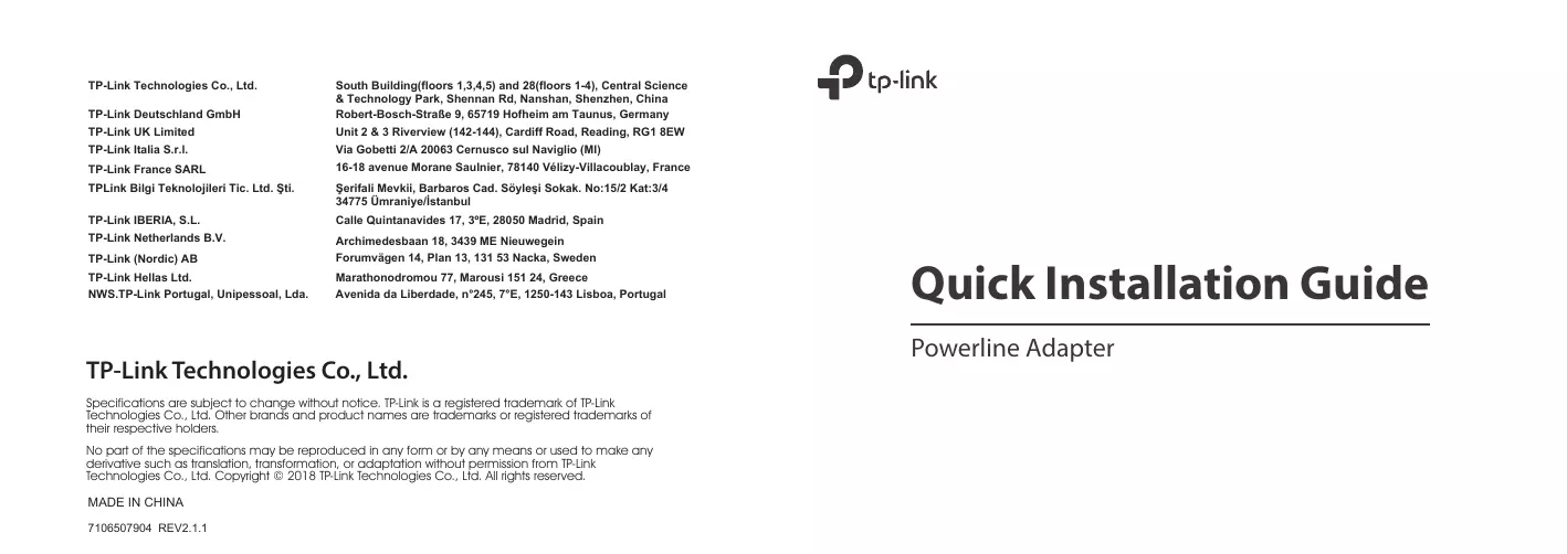 Retrouvez gratuitement la notice de l'appareil TP+PA7010P TP-LINK au format PDF.