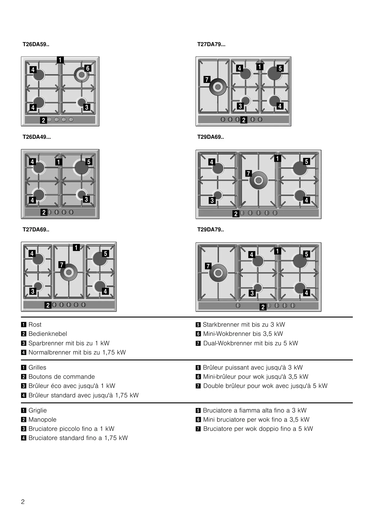 ! Rost % Starkbrenner mit bis zu 3 kW " Bedienknebel & Mini-Wokbrenner bis 3,5 kW # Sparbrenner mit bis zu 1 kW ' Dual-Wokbrenner mit bis zu 5 kW $ Normalbrenner mit bis zu 1,75 kW ! Grilles % Brûleur puissant avec jusqu'à 3 kW " Boutons de commande & Mini-brûleur pour wok jusqu'à 3,5 kW # Brûleur éco avec jusqu'à 1 kW ' Double brûleur pour wok avec jusqu'à 5 kW $ Brûleur standard avec jusqu'à 1,75 kW ! Griglie % Bruciatore a fiamma alta fino a 3 kW " Manopole & Mini bruciatore per wok fino a 3,5 kW # Bruciatore piccolo fino a 1 kW ' Bruciatore per wok doppio fino a 5 kW $ Bruciatore standard fino a 1,75 kW