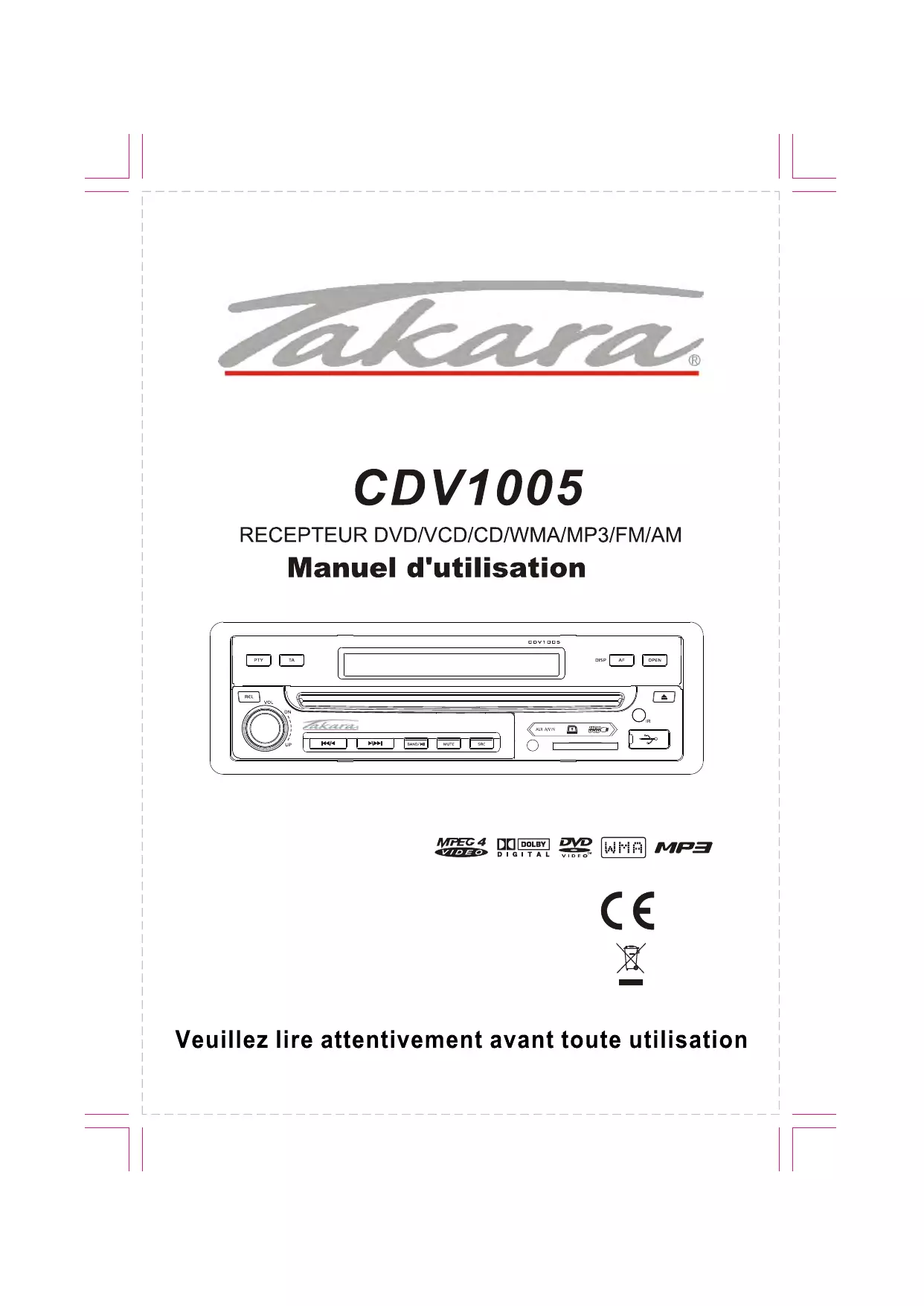 MODE D'EMPLOI CDV 1005 TAKARA