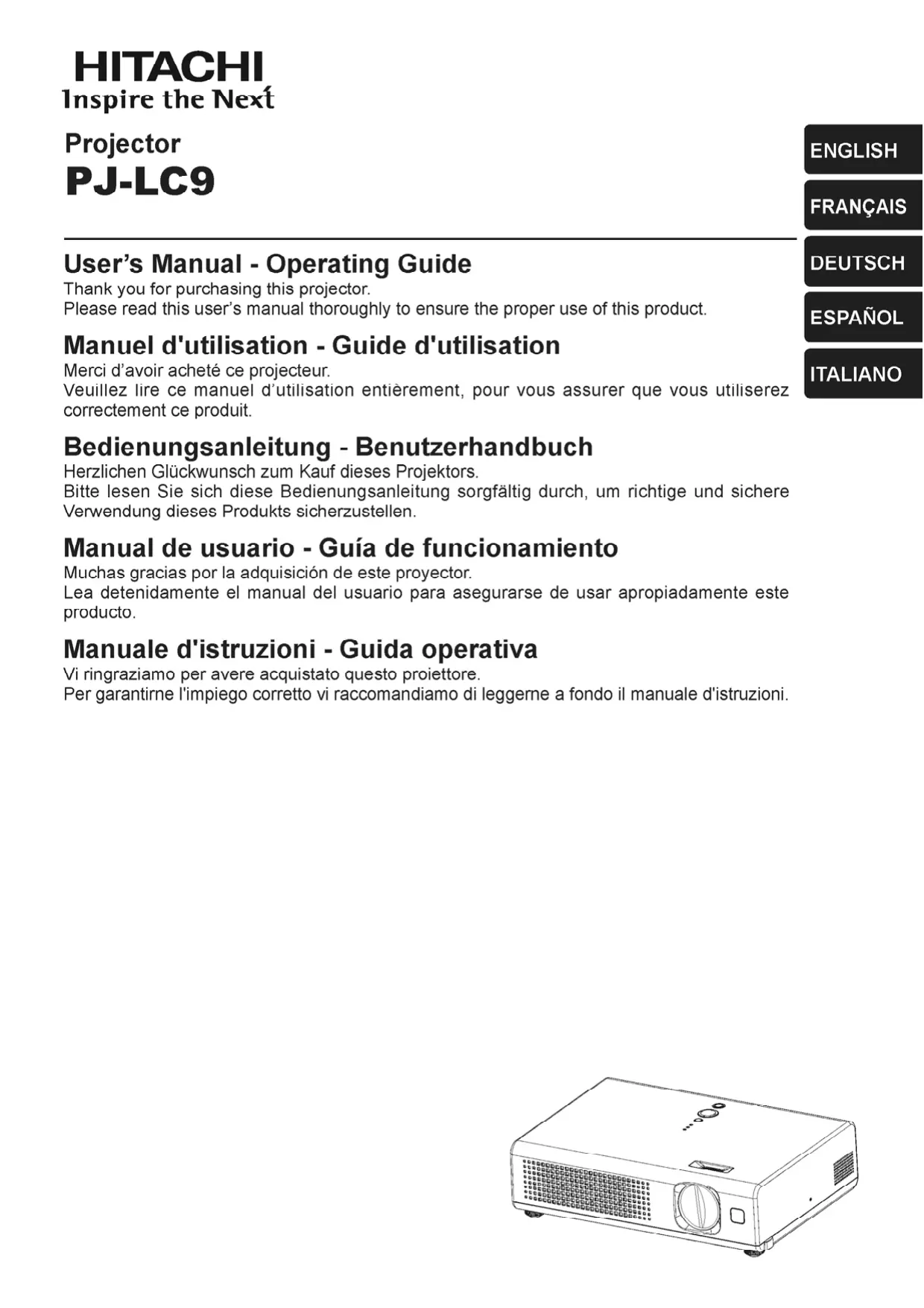 PJLC 9 - Projecteur HITACHI - Notice d'utilisation et mode d'emploi gratuit