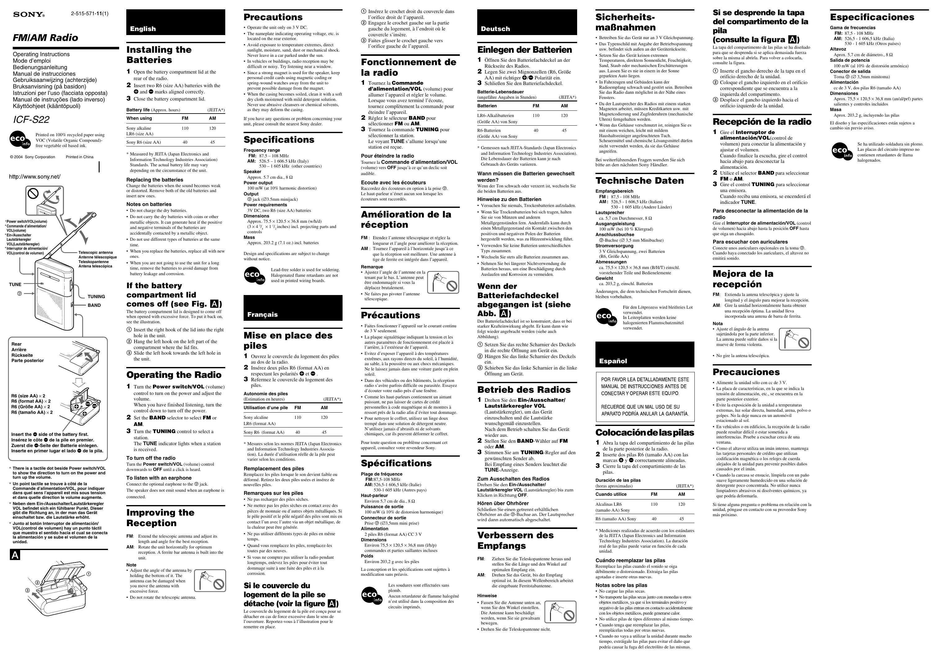 ICFS22.6CE7 - Radio portable SONY - Notice d'utilisation et mode d'emploi gratuit