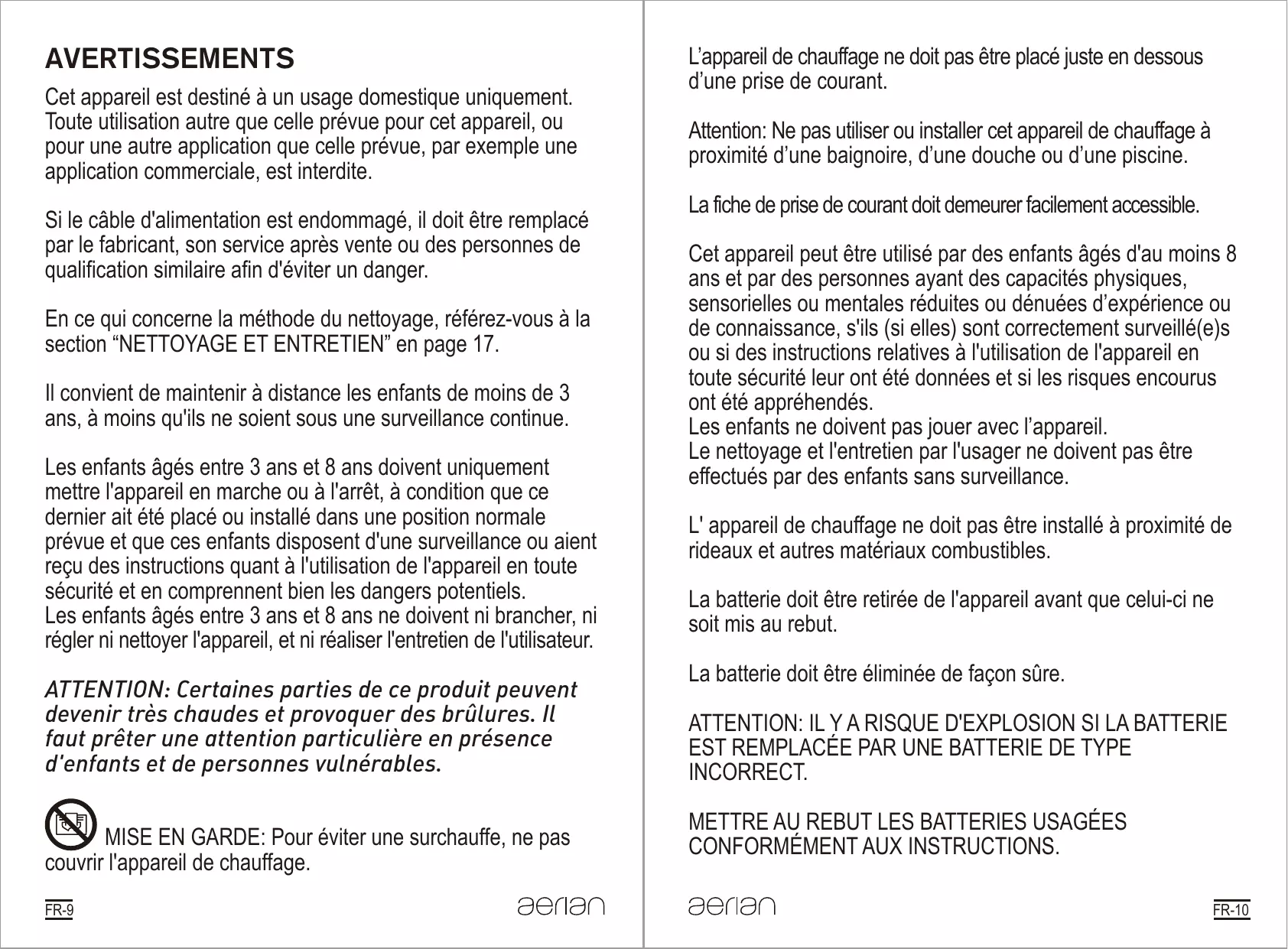ATTENTION: Certaines parties de ce produit peuvent devenir très chaudes et provoquer des brûlures. Il faut prêter une attention particulière en présence d'enfants et de personnes vulnérables.