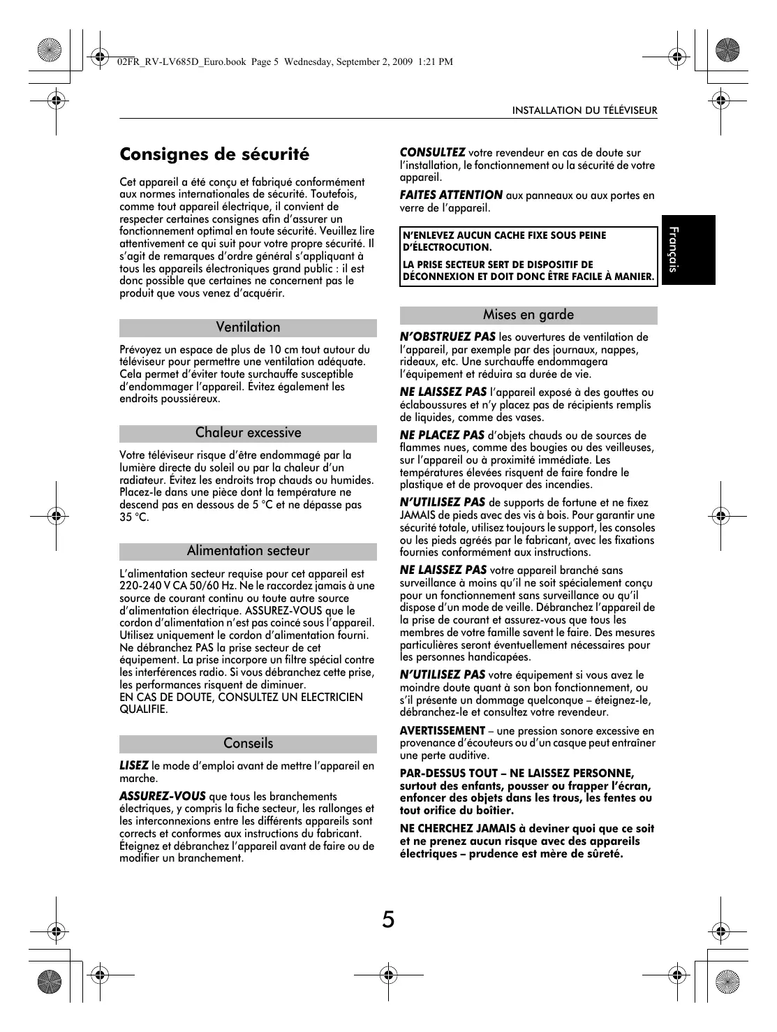 02FR_RV-LV685D_Euro.book Page 1 Wednesday, September 2, 2009 1:21 PM RV6**D Digital