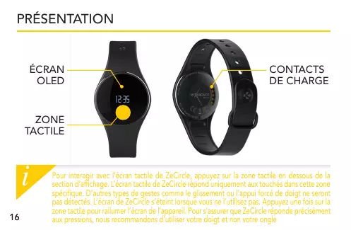 Les fonctionnalités de ZeCircle et le content du manuel de l'utilitaire sont susceptibles d'être modifies. Pouroirnir les dernières instructions sur l'utilisation de ce produit, veillez vous reférer au manuel disponible en ligne sur www.mykronoz.com
