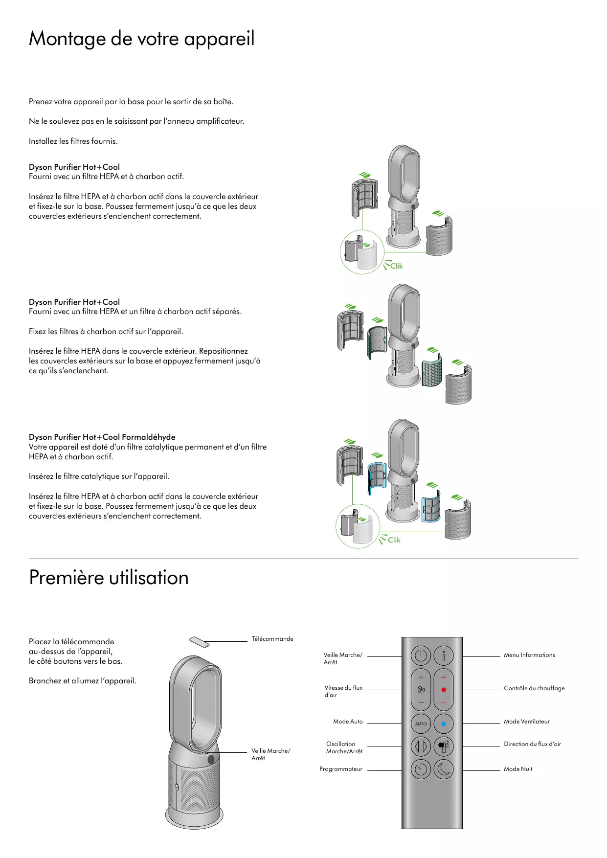 Votre appareil est doté d'un filtré catalytique permanent et d'un filtré HEPA et à charbon actif.