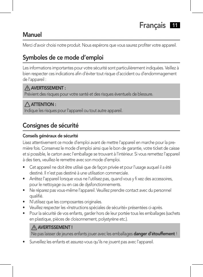 Lisez attentivement ce mode d'emploi avant de mettre l'appareil en marche pour la première fois. Conservez le mode d'emploi ainsi que le bon de garantie, votre ticket de caisse et si possible, le carton avec l'emballage se trouvant à l'intérieur. Si vous remettez l'appareil à des tiers, veuillez-le remettre avec son mode d'emploi.