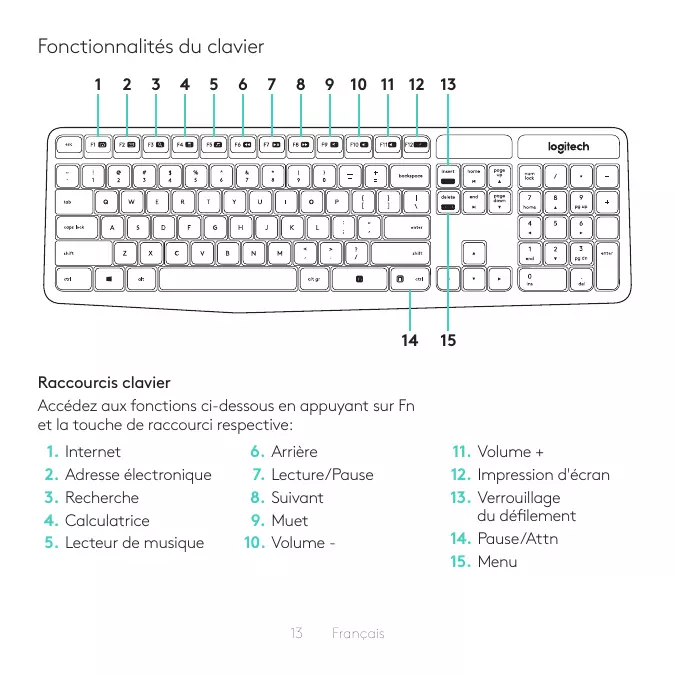 12 Français Fonctionnalités du clavier