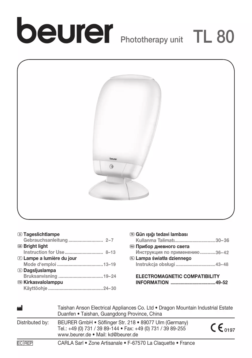 Retrouvez gratuitement la notice de l'appareil TL 80 BEURER au format PDF.