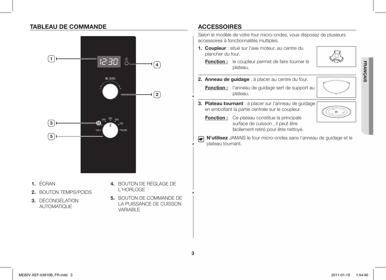 AUTOMATIQUE N’utilisez JAMAIS le four micro-ondes sans l’anneau de guidage et le plateau tournant.
