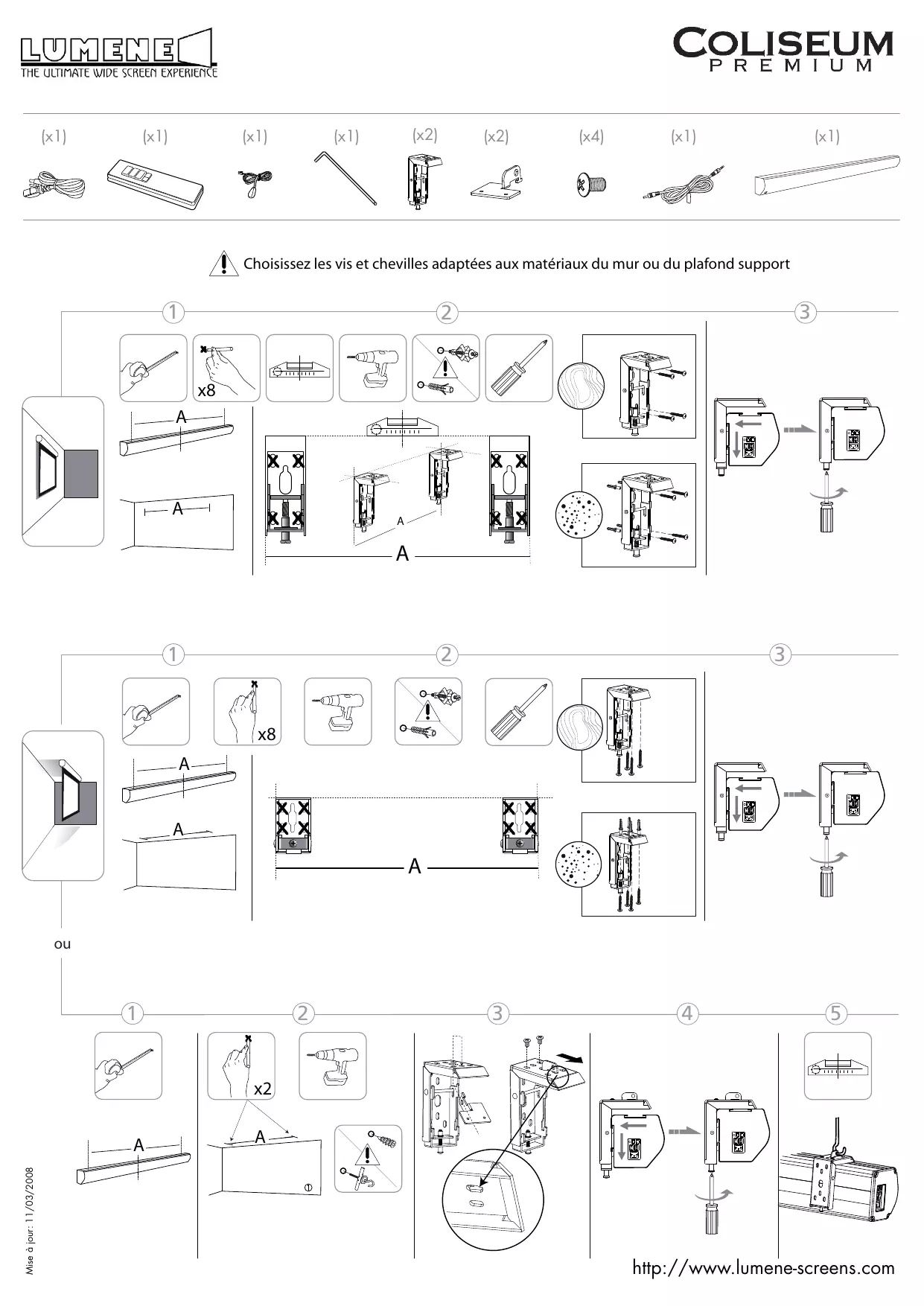 COLISEUM PREMIUM 240C - Support mural pour écran LUMENEREFERENCE - Notice d'utilisation et mode d'emploi gratuit